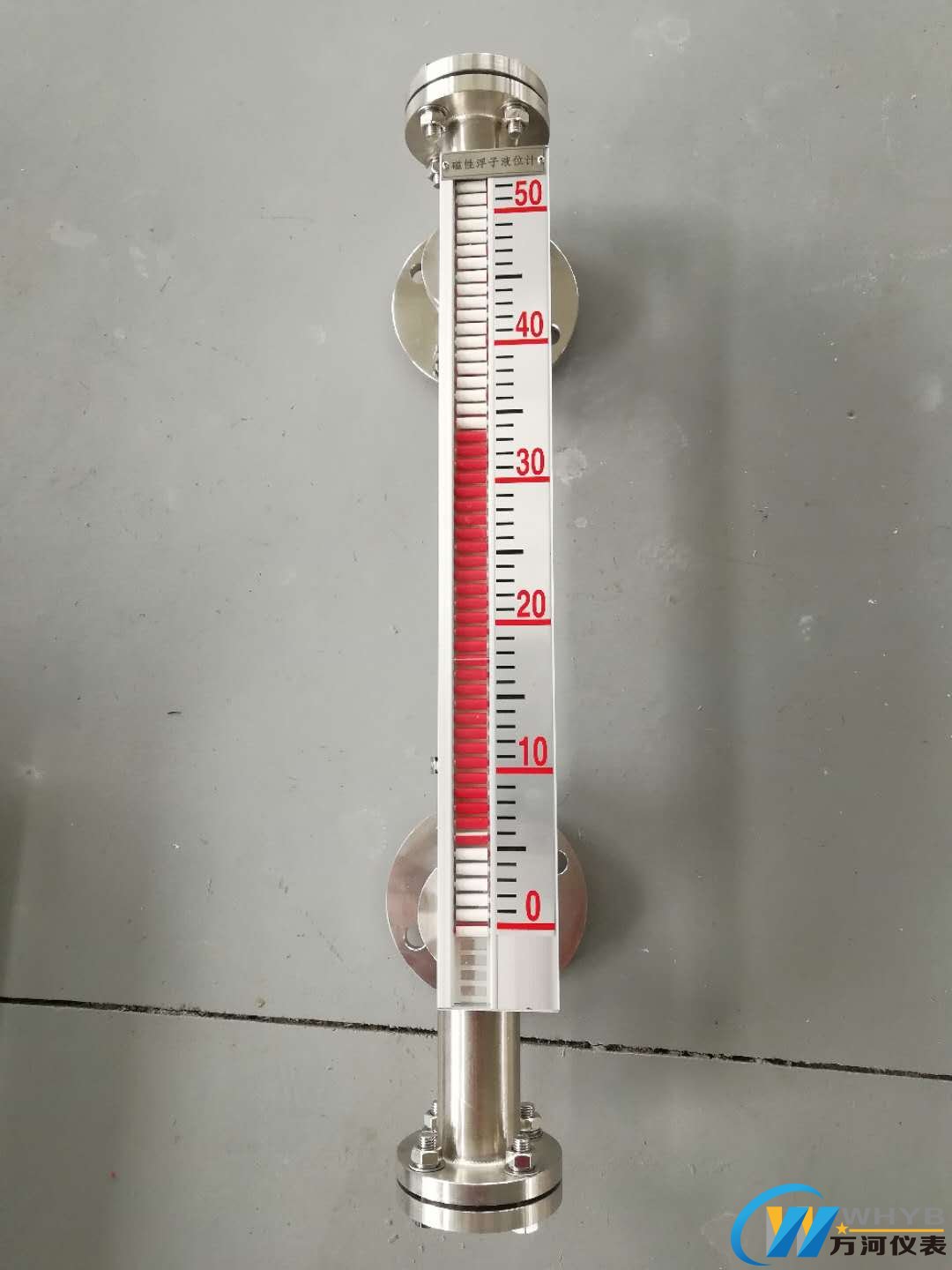 3、液位計安裝完畢后,需要用磁鋼進行校正對翻柱導引一次使零位以下顯示紅色,零位以上顯示白色。