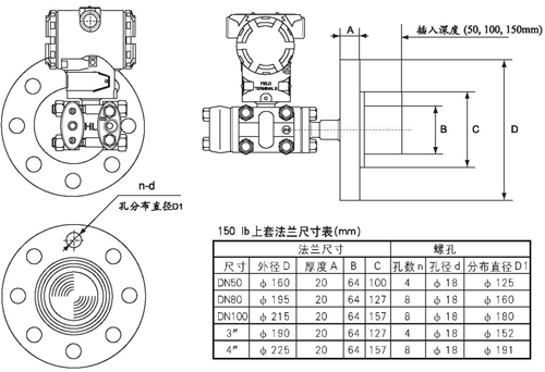 | 法蘭尺寸 | 插入長度 | 高壓側(cè)膜片材料 | |||||||||||